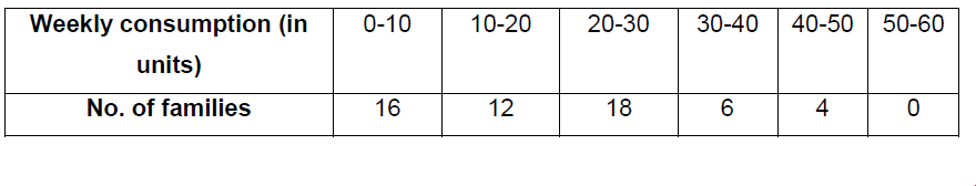 A survey is conducted for 56 families of Colony A. The following tables give the weekly consumption of electricity of these families.